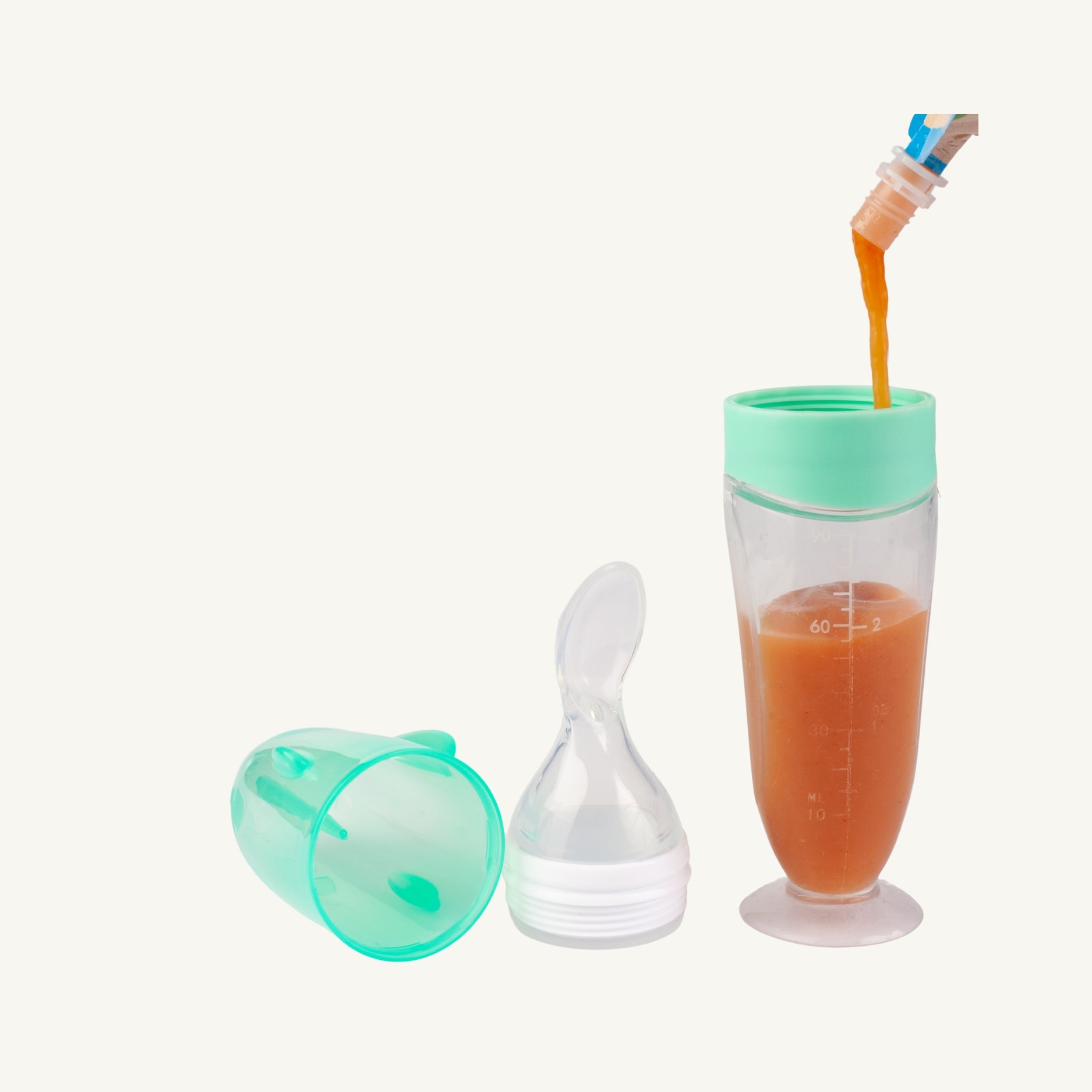 Le biberon-cuillère permet de nourrir votre bébé en toute facilité, en dosant parfaitement purées, compotes et liquides. Un simple geste, et voilà un repas sans débordement.