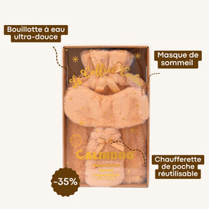 Découvrez notre coffret Calindoo, une merveilleuse sélection pour vos moments de bien-être et de détente ! Ce coffret comprend une bouillotte ultra-douce pour vous réchauffer pendant des heures, une chaufferette de poche assortie pour réchauffer vos mains et un masque pour les yeux relaxant qui va améliorer votre sommeil.